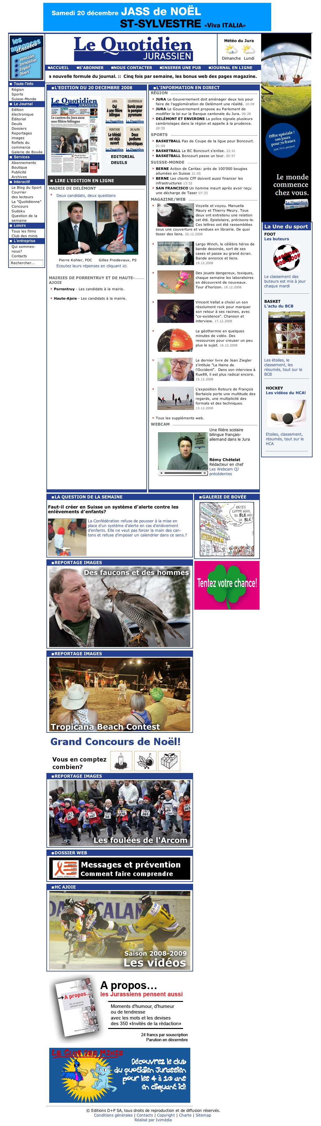 Le Quotidien Jurassien μιας Γαλλικής πόλης. Στην ιστοσελίδα υπάρχουν: άρθρα, ειδήσεις, καιρός και άλλα εργαλεία απαραίτητα για ένα portal ΜΜΕ.